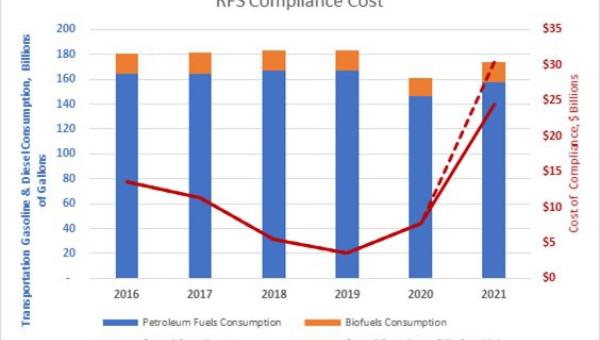 The Renewable Fuel Standard is more expensive in 2021 than at any other point in the program’s 15-year history. Soaring RFS prices signal that the RIN bank could run dry.